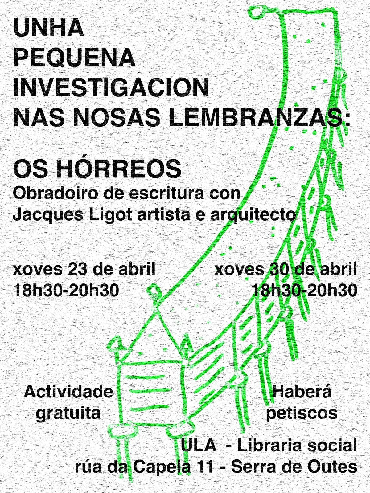 Nesta páxina atoparás as novidades de lectura e as diferentes actividades que levamos a cabo na ULA Libraría Social, pero se queres saber un pouquiño sobre o proxecto, podes acceder ao apartado O proxecto.